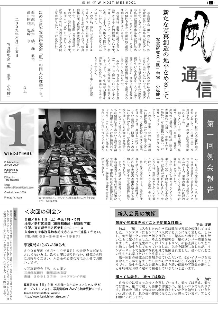 2009年7月17日 「風通信」創刊号発行の記念すべき日に乾杯!!