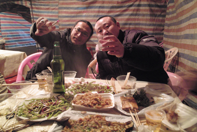 12月17日。武漢で泊まる予定だったが、赤壁で泊まることにした。町は屋台が多く、どの店も長江で獲れた魚が豊富であった。ドライバーの何君と塩崎君はヘビースモーカーなので、僕は2人を「タバコ兄弟」と呼んでいた。