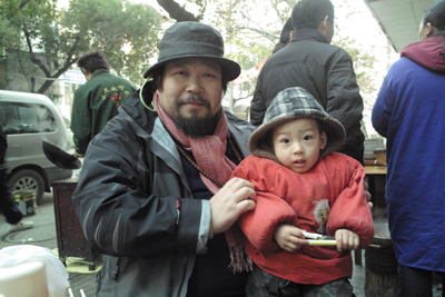 12月18日。この日、合肥までたどり着かねばならず、早朝の出発となった。宿の近くの屋台で温かい麺をとる。若いお母さんが懸命に働いているので、僕は少し子どもと遊んだ。