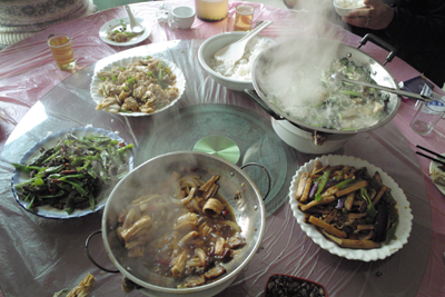 12月18日。合肥へ行く途中、黄梅市という町で昼飯を食べた。この店には至る所に、革命時代の毛沢東の肖像写真が飾られており、最近の中国では珍しい光景だった。