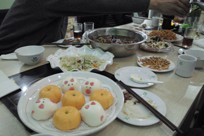 12月18日。合肥の夕食は土家族の料理の店にまた行ってみたが、宣昌のように美味しくはなかった。でも最後にでた饅頭がやけに可愛らしかったのでパチリ。帰りに烏里君と足の按摩をやった。一銭もチップを取らず一生懸命に揉んでくれたのでありがとうと感謝の気持ちを込めてパチリ・・・・・。