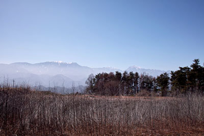 数日前の春のドカ雪で、まだ日陰には雪が残っているが、この2~3日の4月下旬を思わせる”バカ陽気”のおかげで道路はすっかり乾燥していた。南アルプスの山々は、急な温度の上昇で春霞がかかっているように、すっきりとはその山容をみせてはくれなかったが、八ヶ岳連峰は、主峰の赤岳(2899m)をはじめ白い峰峰を早春の蒼空に突き立てていた。標高1000メートルを超える登山道入り口まで登ってみたが、さすがにここまで来ると雪は深かった。明野という高原の村で地元でとれた野菜料理などで遅い昼食をした後、韮崎の町に戻った。